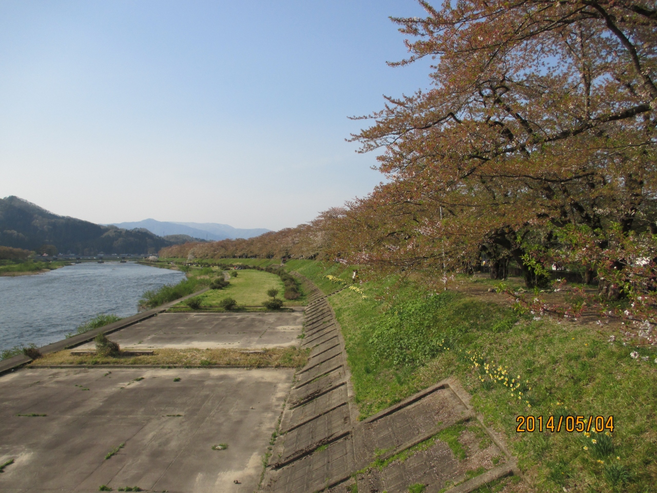 東北の代表的な桜の名所の角館にあります。桧木内川堤の桜はソメイヨシノで、堤防沿いの約2kmの距離をソメイヨシノで埋め尽くしています。ゴールデンウィークの時には、このソメイヨシノが満開になり、見事な桜のトンネルをつくってくれます。今年はちょっとタイミングが悪くて桜が散りかけていました。