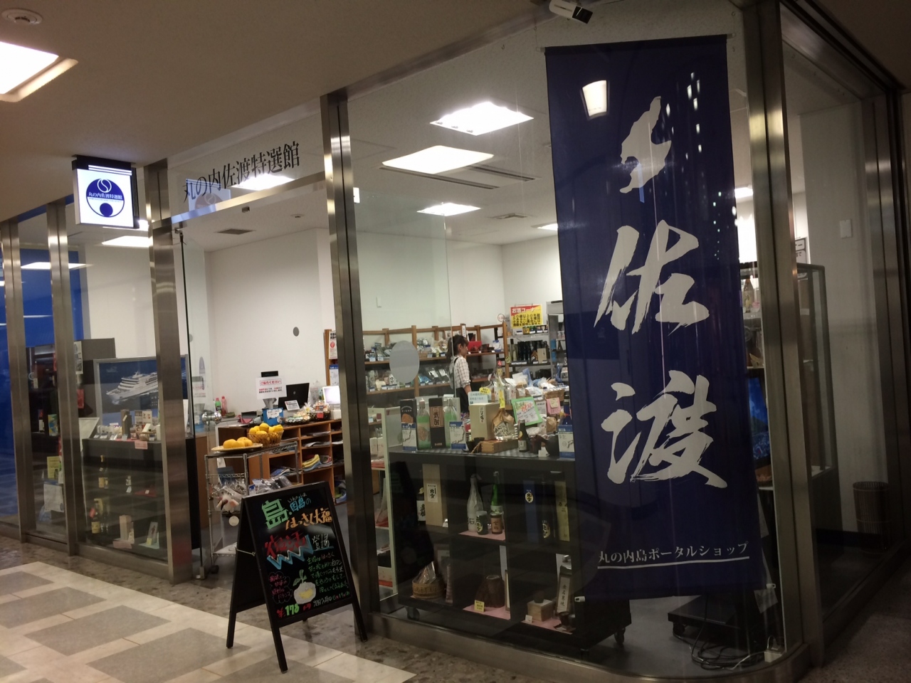 有楽町や銀座には各地方のアンテナショップがたくさんありますが、こちらは山手線の内側、丸の内のオフィスビル内にあります。国際ビルの1階入口を入ってす、地下レストラン街へ続く階段の近くにあるため分かりやすいですし、佐渡と書かれた大きな垂れ幕も目立ってました。