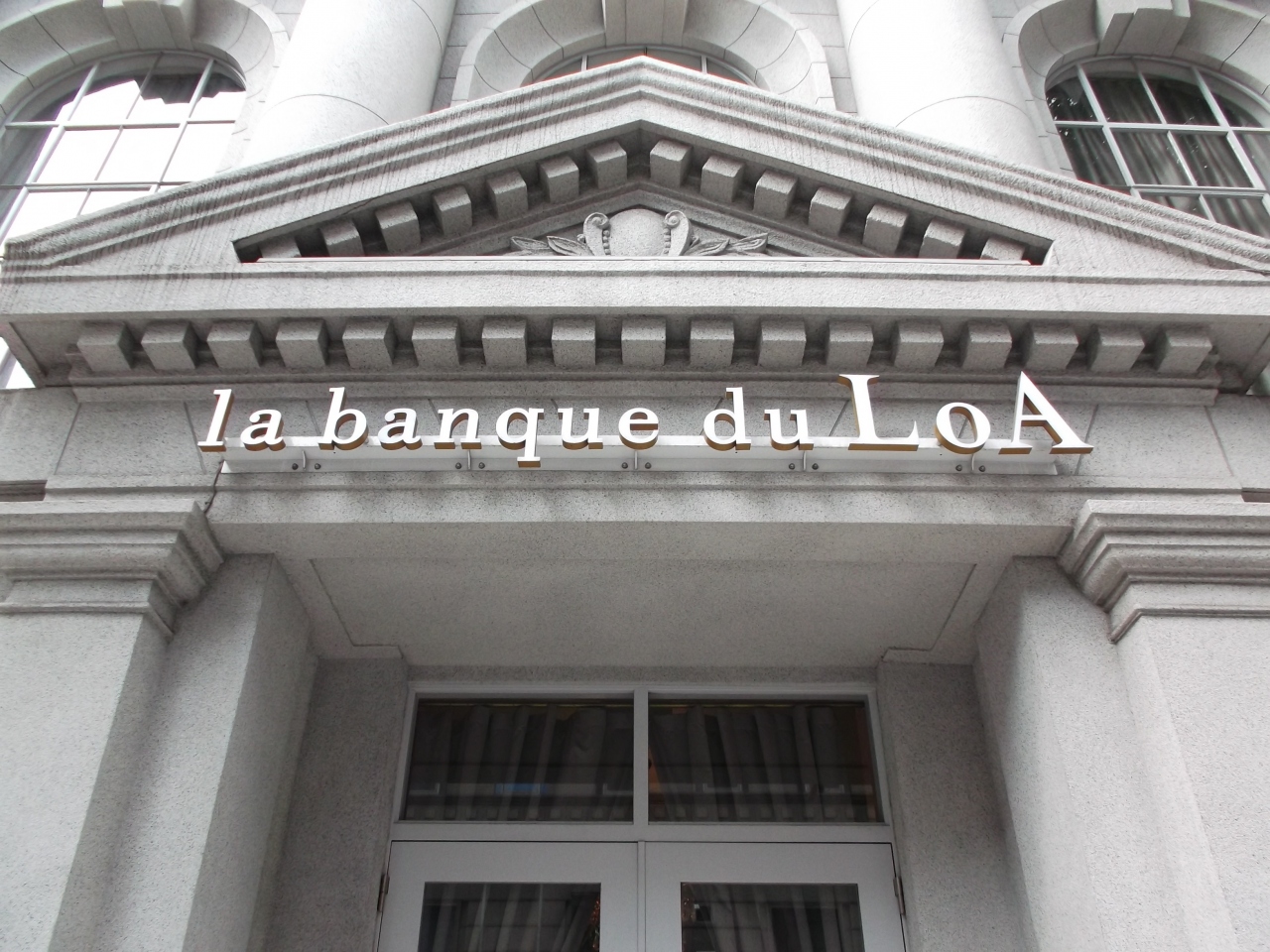 ここもアンティークな建物、実態は現在結婚式場です。入口にバンフレットが置かれていました。宣伝もよくされているみたい。横文字で「ラ バンク ド ロア」。中はシックな造り音の演出ある感動ウェデングですって。