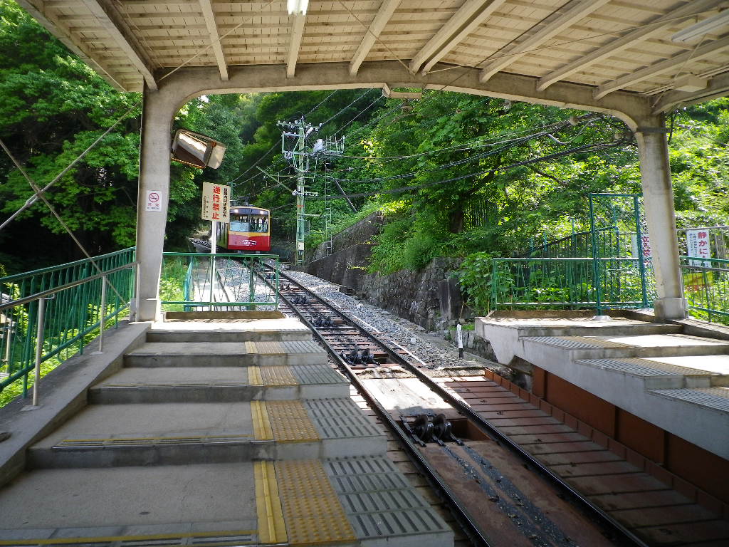 石清水八幡宮は徒歩かケーブルカーを利用して登るかの二つに一つ。初詣時期は非常に混みあいますが、通常は休日であってもほぼ貸切状態。15分間隔で運転されており、男山山上駅までわずか3分で到着します。歩くと30分程。