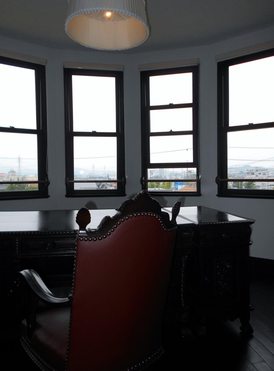 1階の夫人室・2階の書斎は半円形のベイウィンドが印象的。
