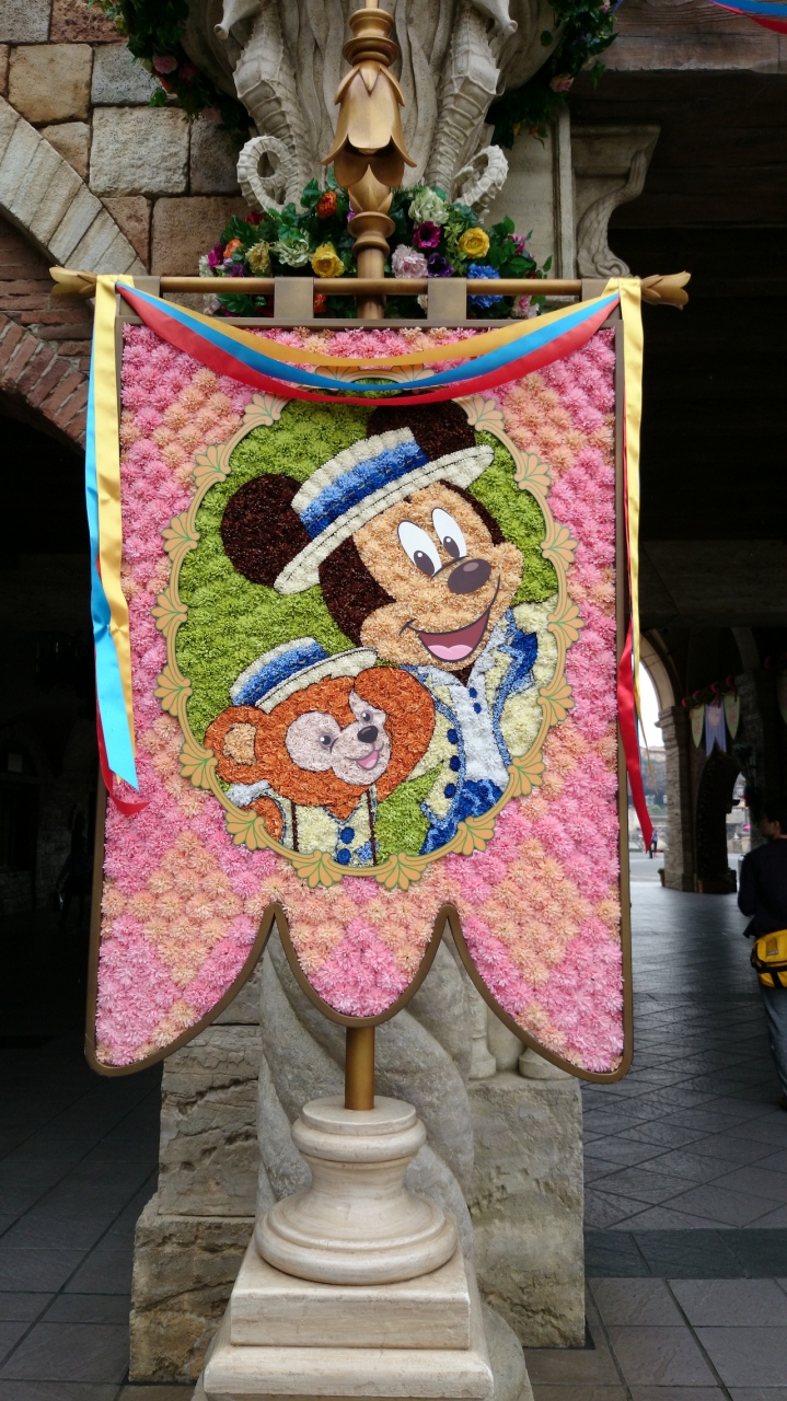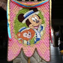 パーク内の様々な場所に花(造花)で出来たダッフィーが居ます。