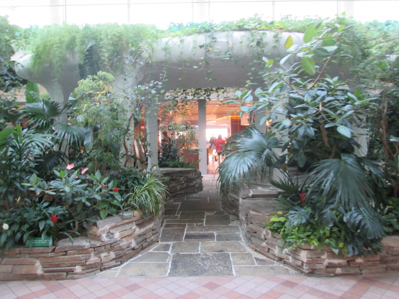 搭乗のためのセキュリティーチェックが終了後もターミナル内の飲食店、売店は充実しています。緑豊かな椅子がある休憩スペースもありました。搭乗前までいろいろと時間を有効に活用してターミナルの施設を利用できます。