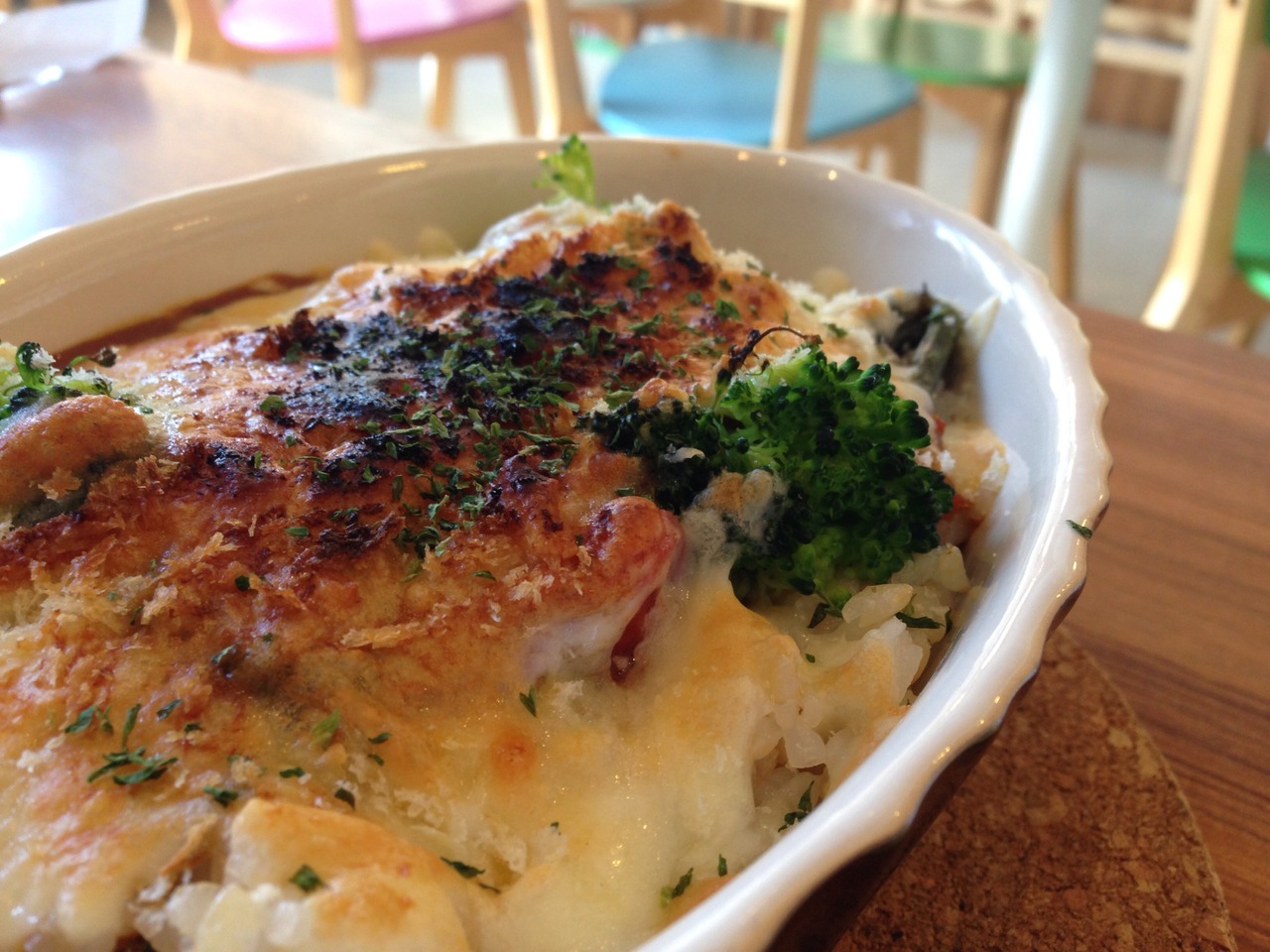 焼きチーズカレーは、サラダとドリンク、平日限定でプチデザートつきです。