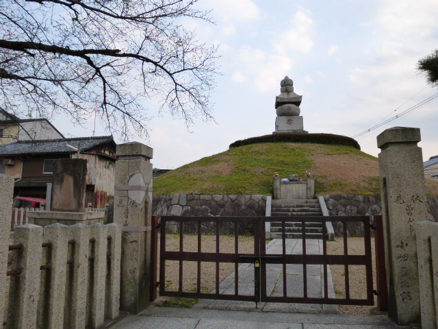 東山地区の豊国神社の参道沿いにある緑地の一部がこんもりと盛り上がっており、そこが「耳塚」と記されていました。