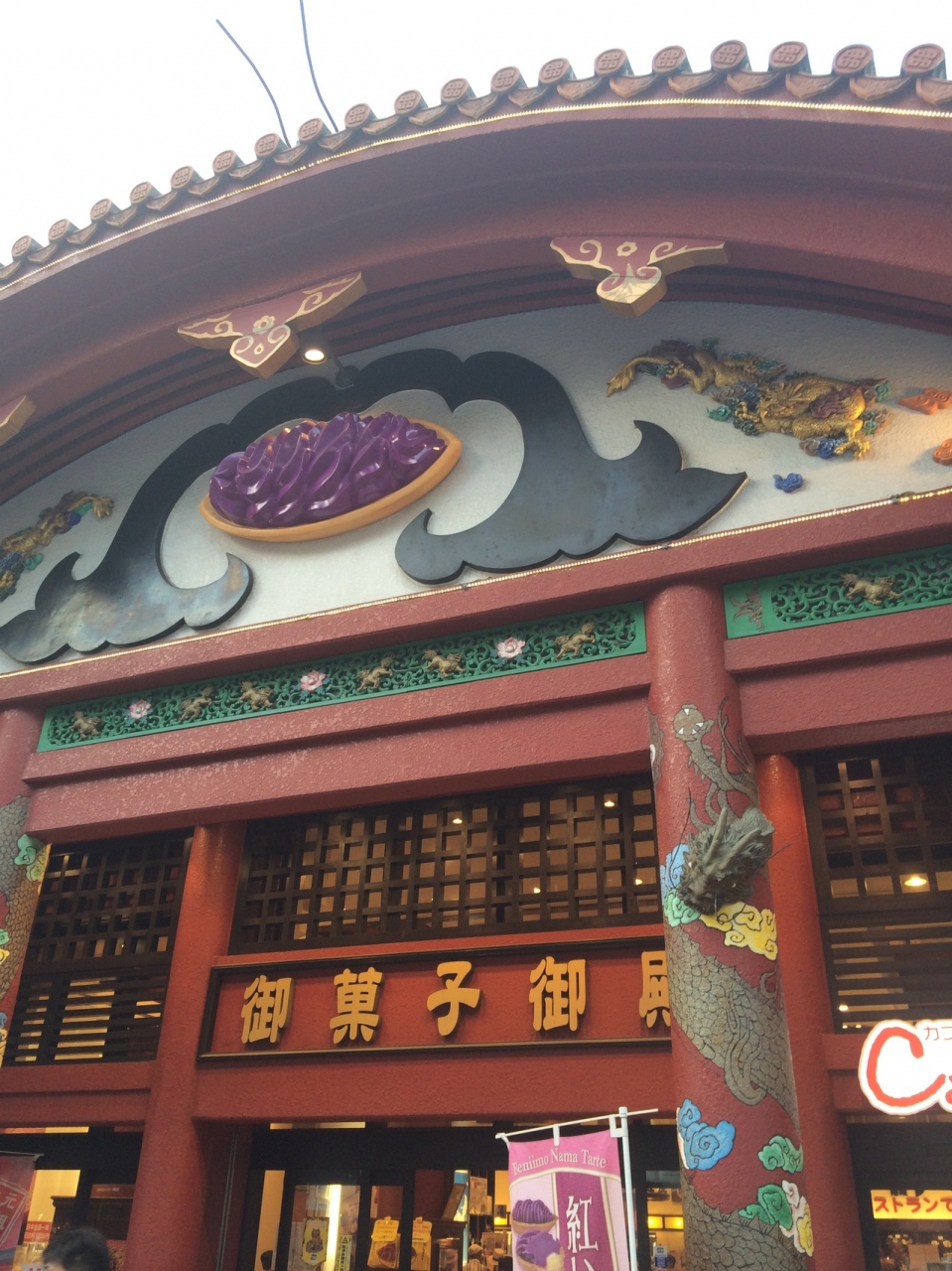 県庁駅近くのおかし御殿。紫いもで勝負しているのが伝わりです。その他にも、沖縄のお土産などが試食できて嬉しいお店です。特に、このお店のタルトとソフトクリームはスイーツ好きにはたまらないと思います。ぜひに。