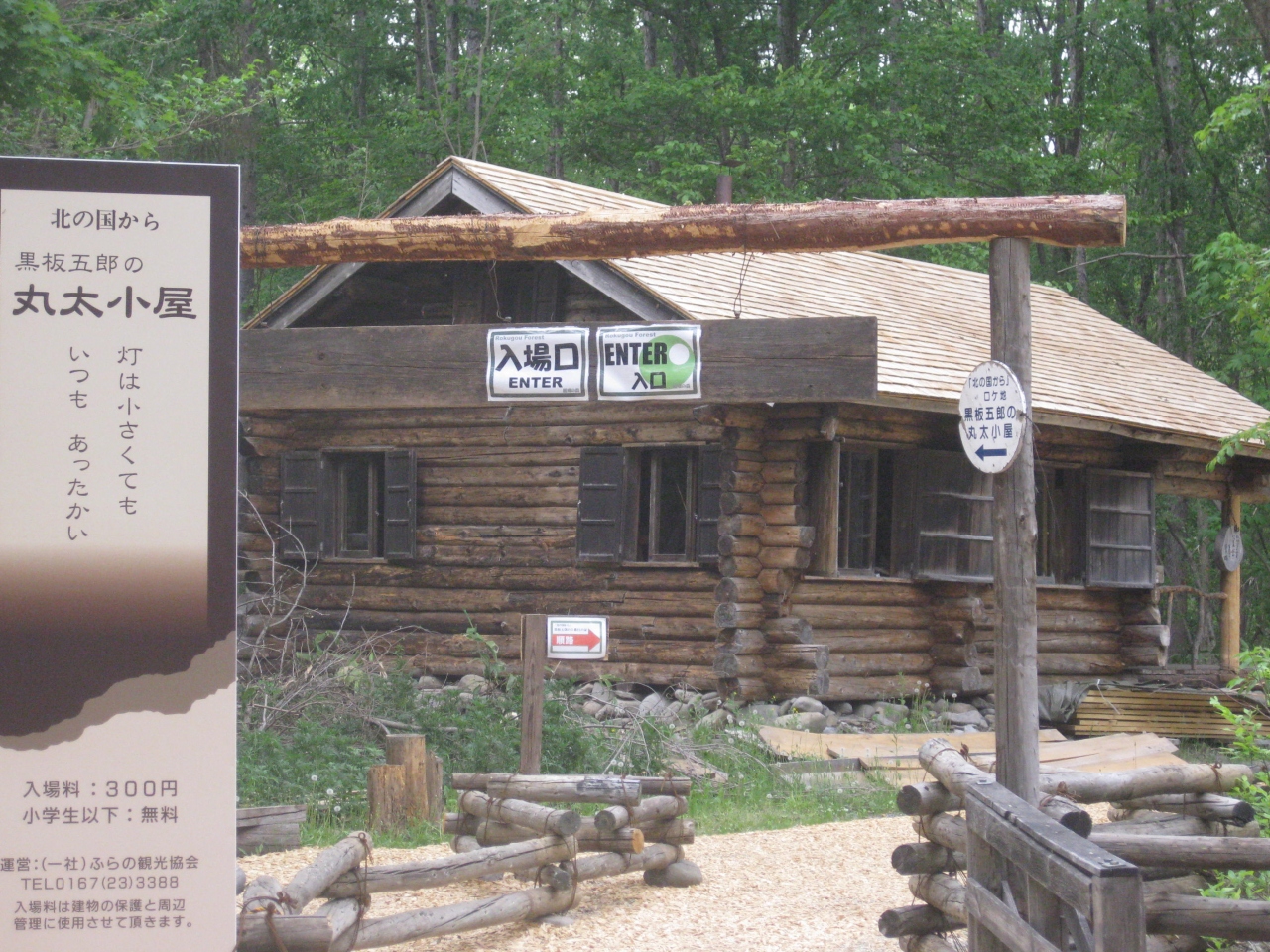 丸太小屋は中に入るのは入場料がいりますが、外から見るだけであれば無料で見れます。
