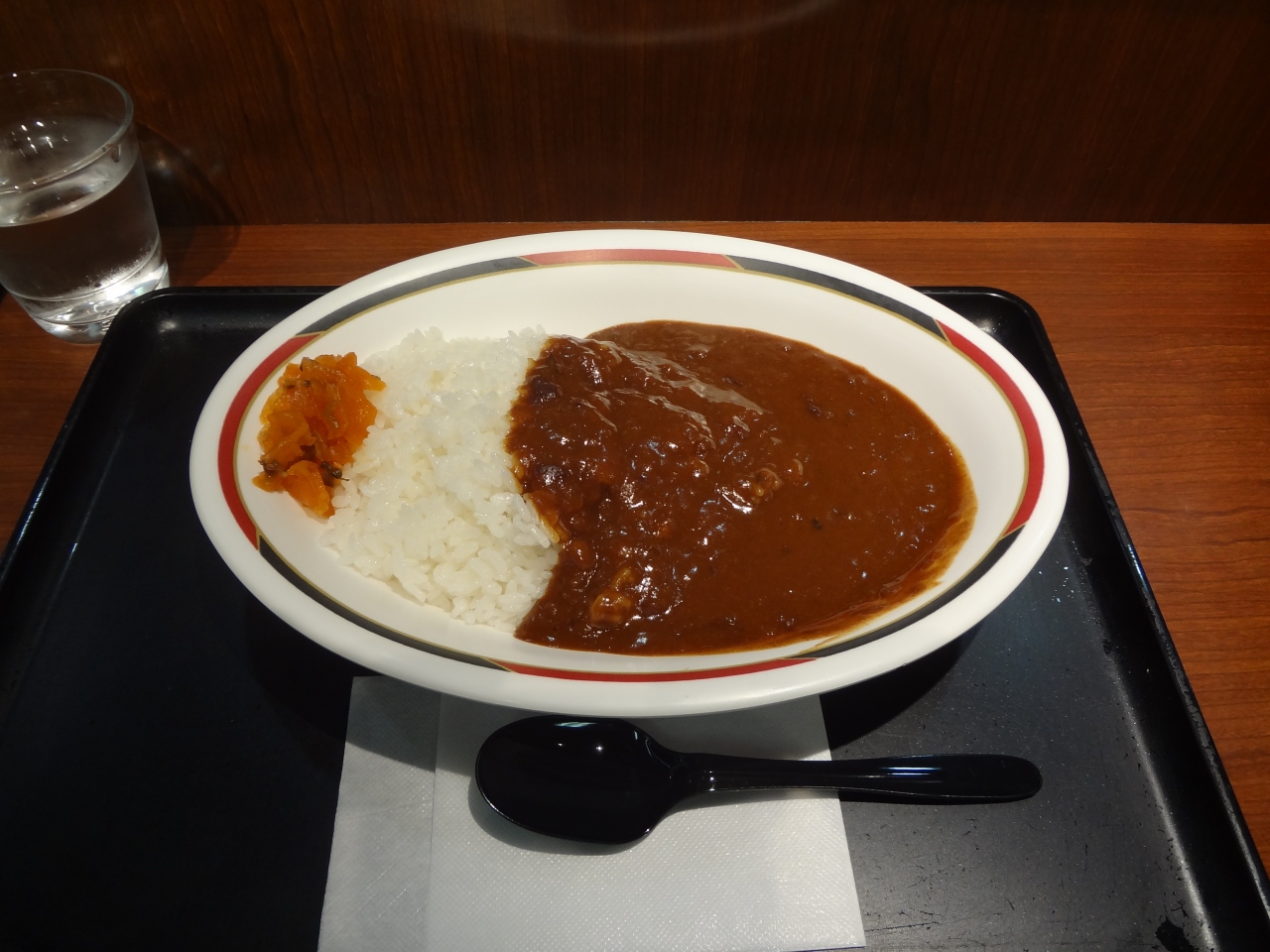 保安検査場を通ったゲート内にあるレストランです。レストランといってもカウンター形式で軽めの食事を提供するお店なので長居するようなところではありません。でもそこそこ混んでました。席に座ってカレーライスを注文。代金は前払いです。ぼーっとしていたら催促されました。値段は570円。味は悪くありませんが具がまったくありませんでした。