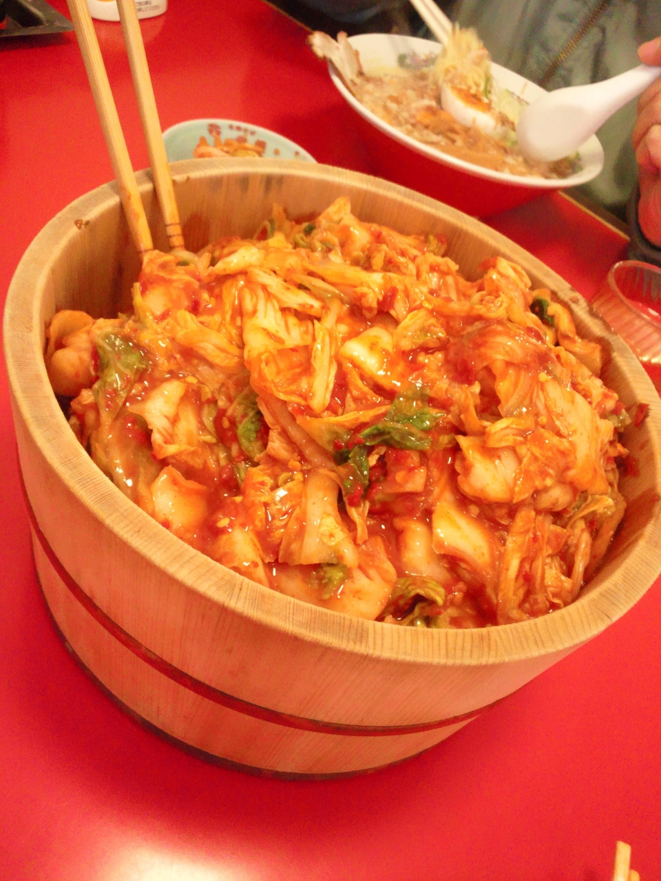 テーブルにはキムチのような漬物も食べ放題でおいています。