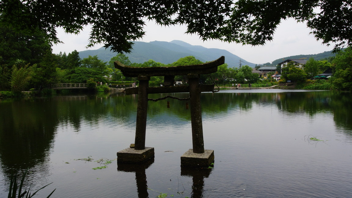 駅から歩いてくると金鱗湖付近で人が急激に増えます。そして、中国語と韓国語が飛び交います。日本人はどこに行ったの???周辺の駐車場に大型バスが乗り付けてきて、大量の外国人を這い出す関係でこの周辺だけ混んでいます。でも、金鱗湖ってそんなに有名なの?池の魚を見ると少しカラフルで攻撃的な魚が一杯居ます。どう見ても外来種にしか見えません。池の周りを半周するだけで終了です。お薦めの撮影ポイントは 池の端にある神社の裏。池との隙間から池側を見る場所、如何ですか?池沿いに日帰り温泉施設もありますが、流石に入りにくいです。
