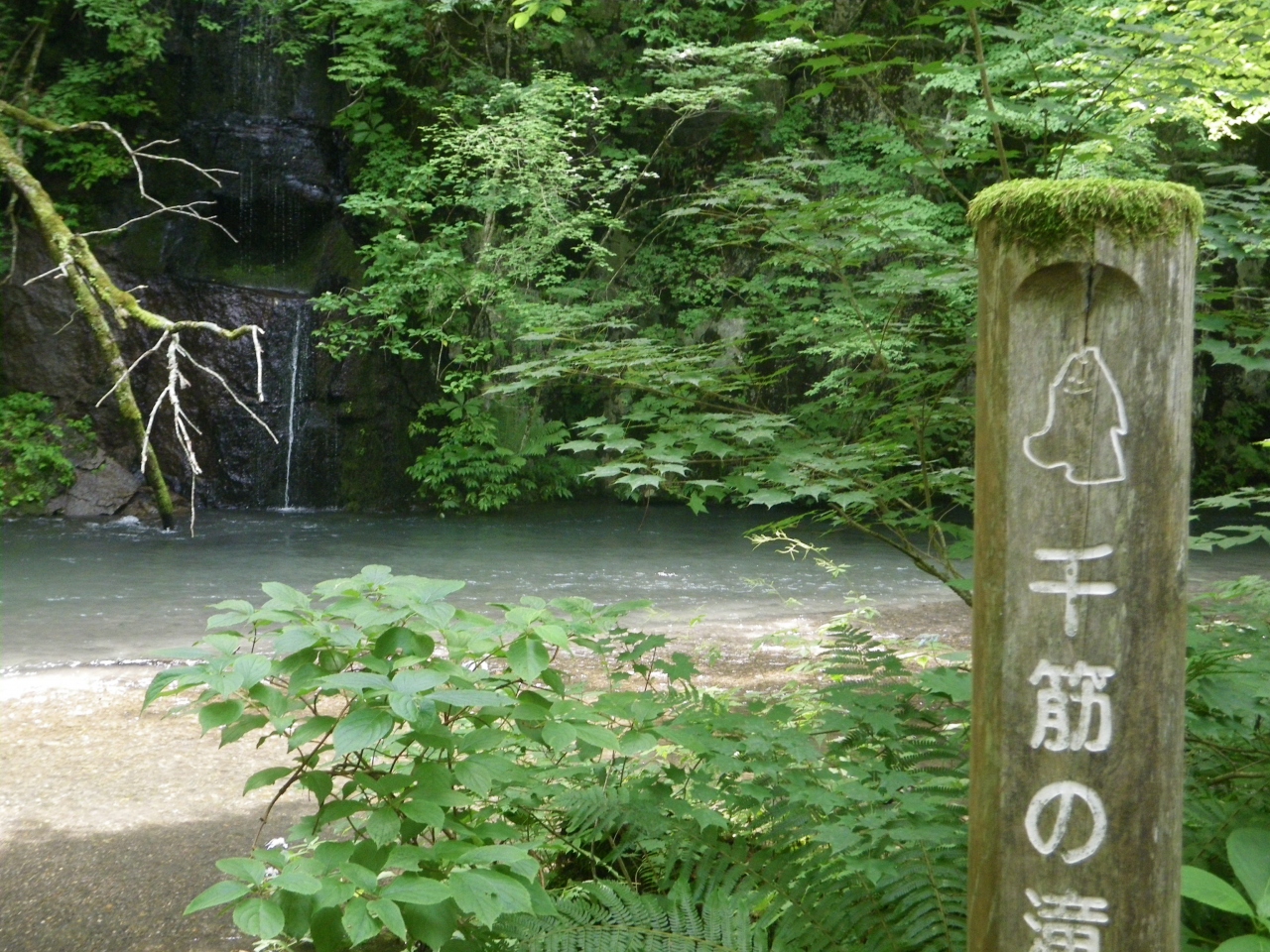 滝?というと違うものを想像してしまいそうなくらい、名前の通り、本当に「筋」で何本かあり(季節にもよるそうですが・・・)繊細な感じの滝ですね。