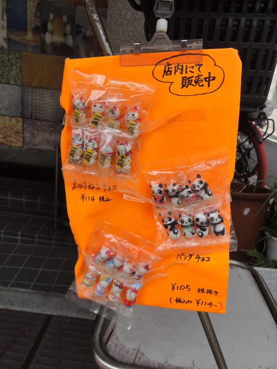 飴の看板を掲げるだけあって店内にはいろいろな飴がありました。昔ながらの素朴なニッキ飴や見て楽しい飴の他に、見るからに可愛いパンダや招き猫の創作チョコもありました。店頭にはスーパーでは見かけない美味しそうな煎餅の他、好きな芋けんぴもありました。飴が好きな方には嬉しいお店です。
