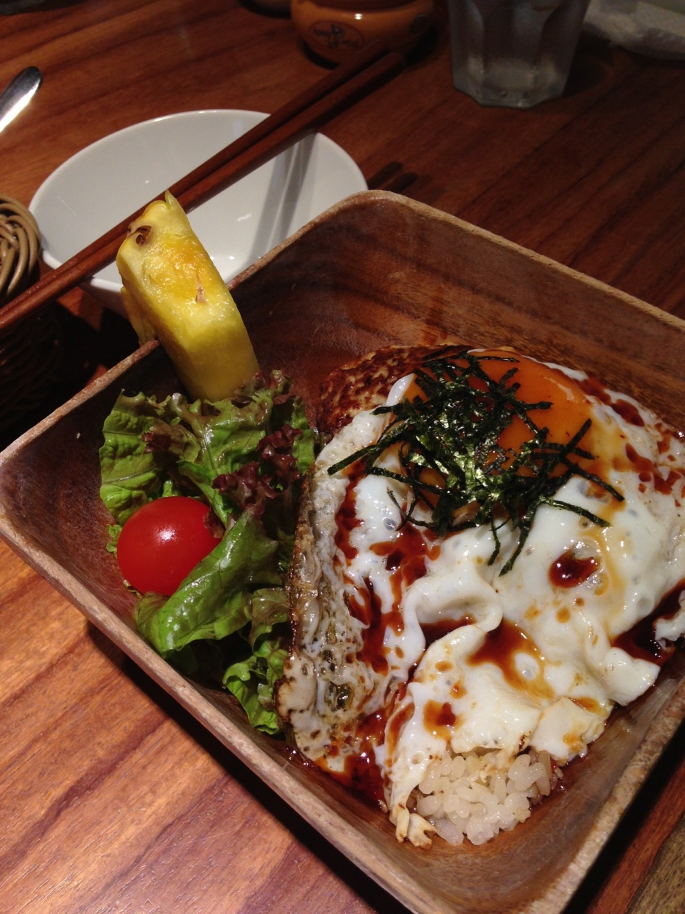 ランチメニューが4種類ほどあり、どれも美味しそうでまよいましたが、五穀米の豆腐バーグロコモコを注文しました。