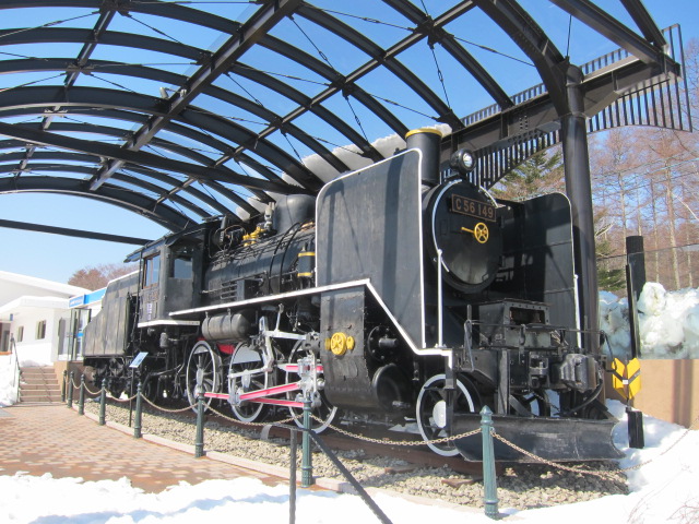 駅敷地内(構内ではない)には、かつて走っていただろうC56蒸気機関車が展示されている。