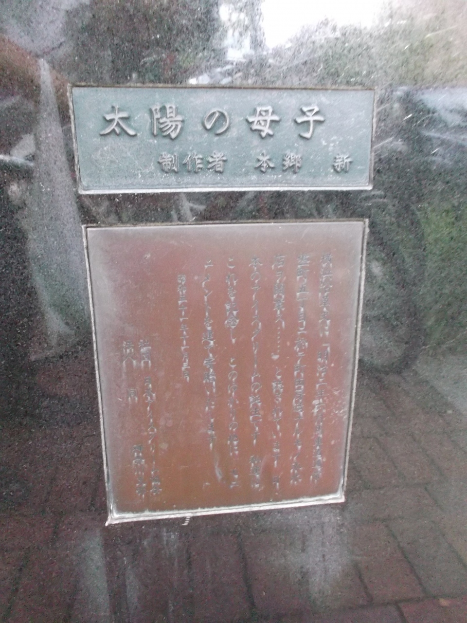 明治2年(1869)、氷水屋の町田房造(旗本の息子)がご当地で氷と塩からなる「あいすくりん」なるものを売ったとあります。昭和51年(1976年)のこと、ここ馬車道通りにその記念(発祥の地)として寄贈されたのが「太陽と母子」像なのです。