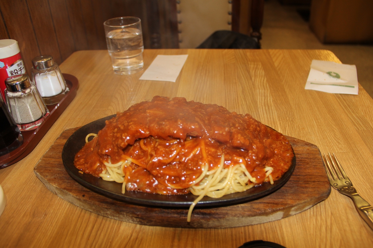 釧路というと炉辺焼きといった名物料理で知られるが、一方のB級グルメの代表格を出す店がこの店。ミートスパゲティの上にカツが載っているのには驚くけれどボリューム満点でたらふくになる。味も結構うまくマッチしていてオススメ。