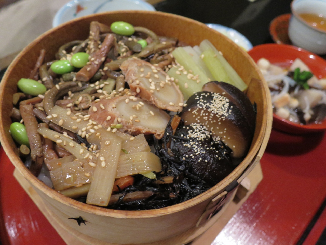 あたくしは、白魚せいろめっぱめしとこづゆ 1,450円(税別)、ずんちとコドモたちは、季節限定の山菜せいろめっぱめしとこづゆ 1,650円を選びました。
