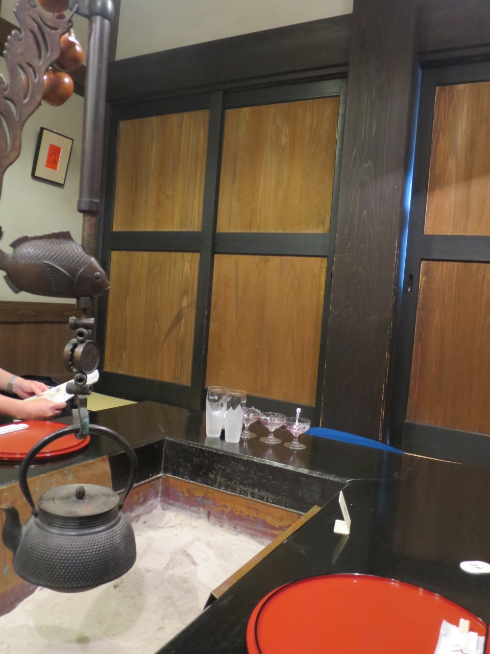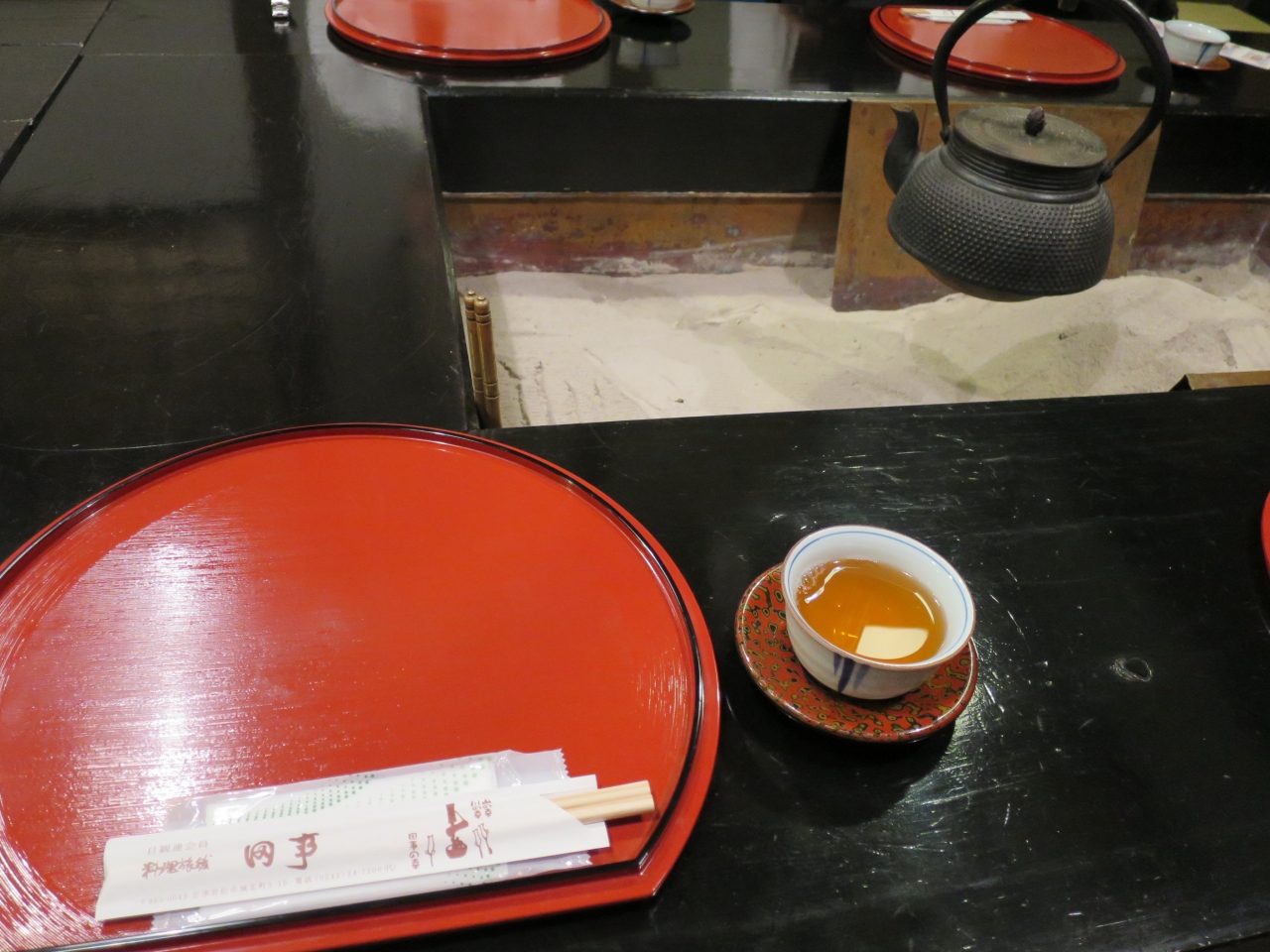 囲炉裏を囲む席に案内され、メニューを拝見。