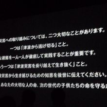 シアターでは、リアル感満載で津波の怖さについて、大阪の街並みをグラフィックで津波被害を表現しています。
