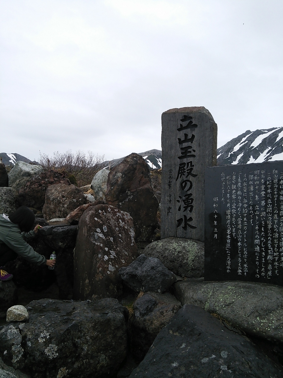 室堂ターミナルからすぐの所にあります。「タマドノノユウスイ」と読みます。ペットボトル片手に結構並んでいました。並んでなければ、水を触ってみようかと思いましたが、昼食前で時間がなく、また水がチョロチョロ出ており時間がかかるなと思い、諦めました。