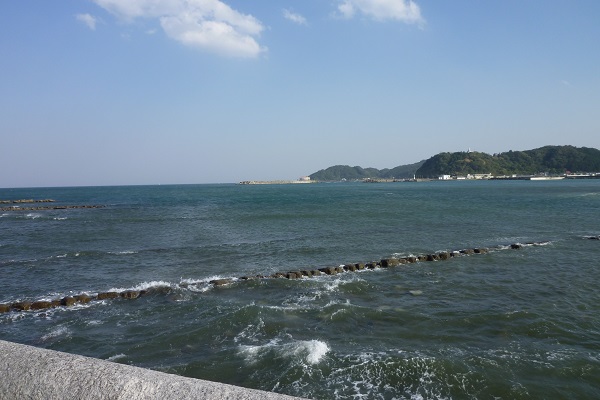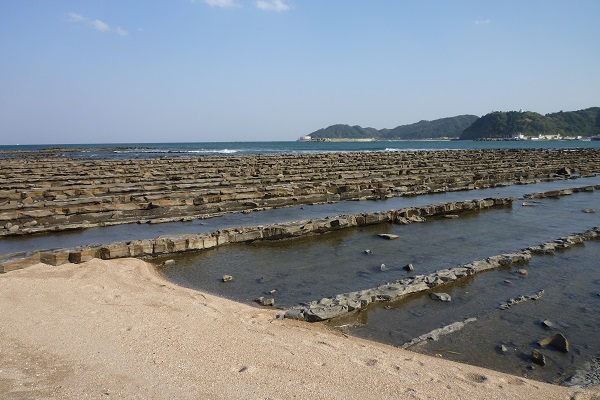 青島への海岸線ですが、波にけずられ、独特な形状です。