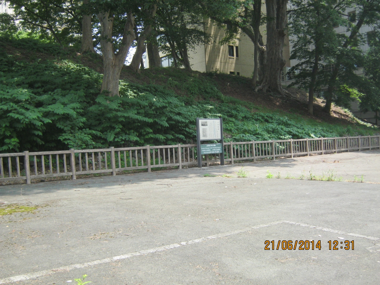 山形駅から東500m程度の位置のあります。大通りに面した建物の裏手にあります。隣接して歌懸稲荷神社があります。周りは柵でおおわれていますので、土塁には登ることができません。しかし土塁の高さとその外側の空堀(かつては水があったのかも)から守りの強固さを感じます。