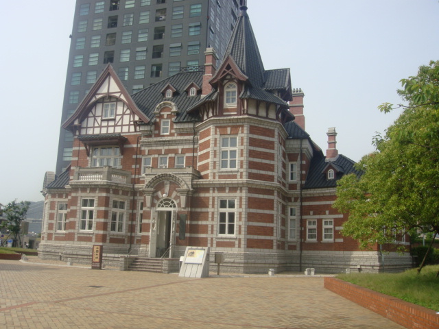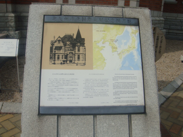 赤レンガでレトロチックな図書館ですが、とても図書館には見えません。1995年に北九州市と中国・大連市の友好都市締結15周年を記念して、かつて大連にあった東清鉄道汽船会社事務所の複製建築物です。複製建築物といっても門司レトロ地区の歴史的建造物によく溶け込んでいます。一階はレストランになっています。