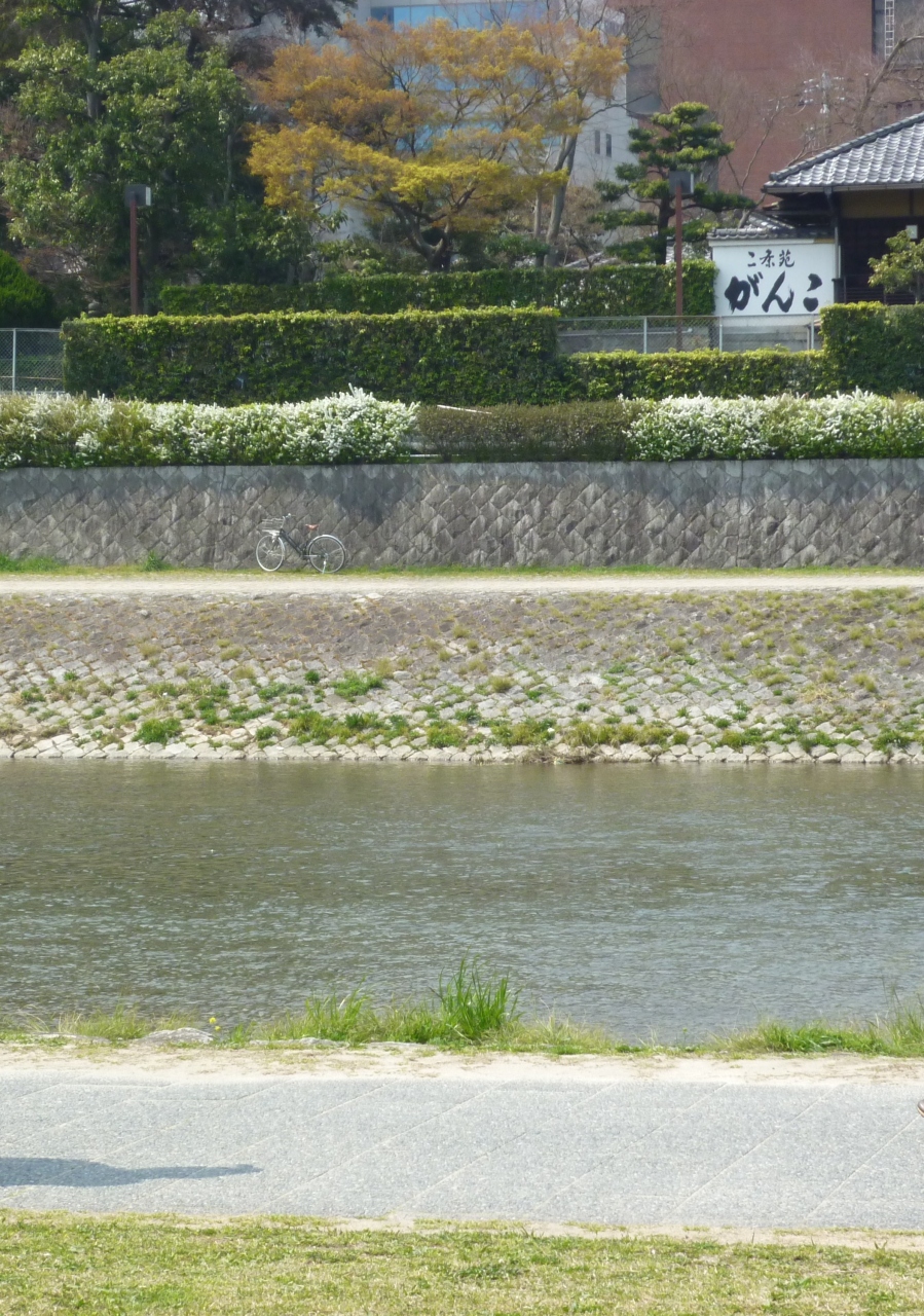 京都へ行った際に、子供を走らせてあげたくて(遊ばせたくて)立ち寄りました。オークラホテルから東山区の方へ川を渡り、北上したあたりの河原沿いが芝生にもなっており、観光で疲れた子供を思いっきり走らせてあげる事ができました。桜の時期でもあり、お花見もできました。