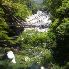 一歩踏み出すたびに揺れ、眼下には床面の木の間から見える川という光景がなんとも恐怖心を駆り立てられ、スリル満点。