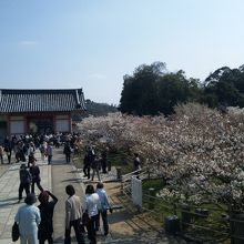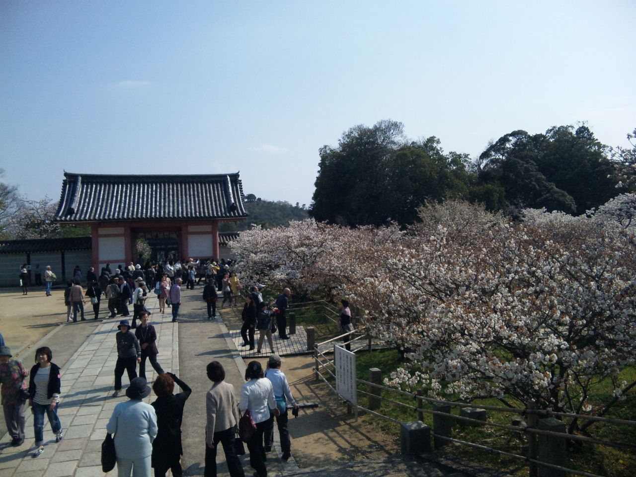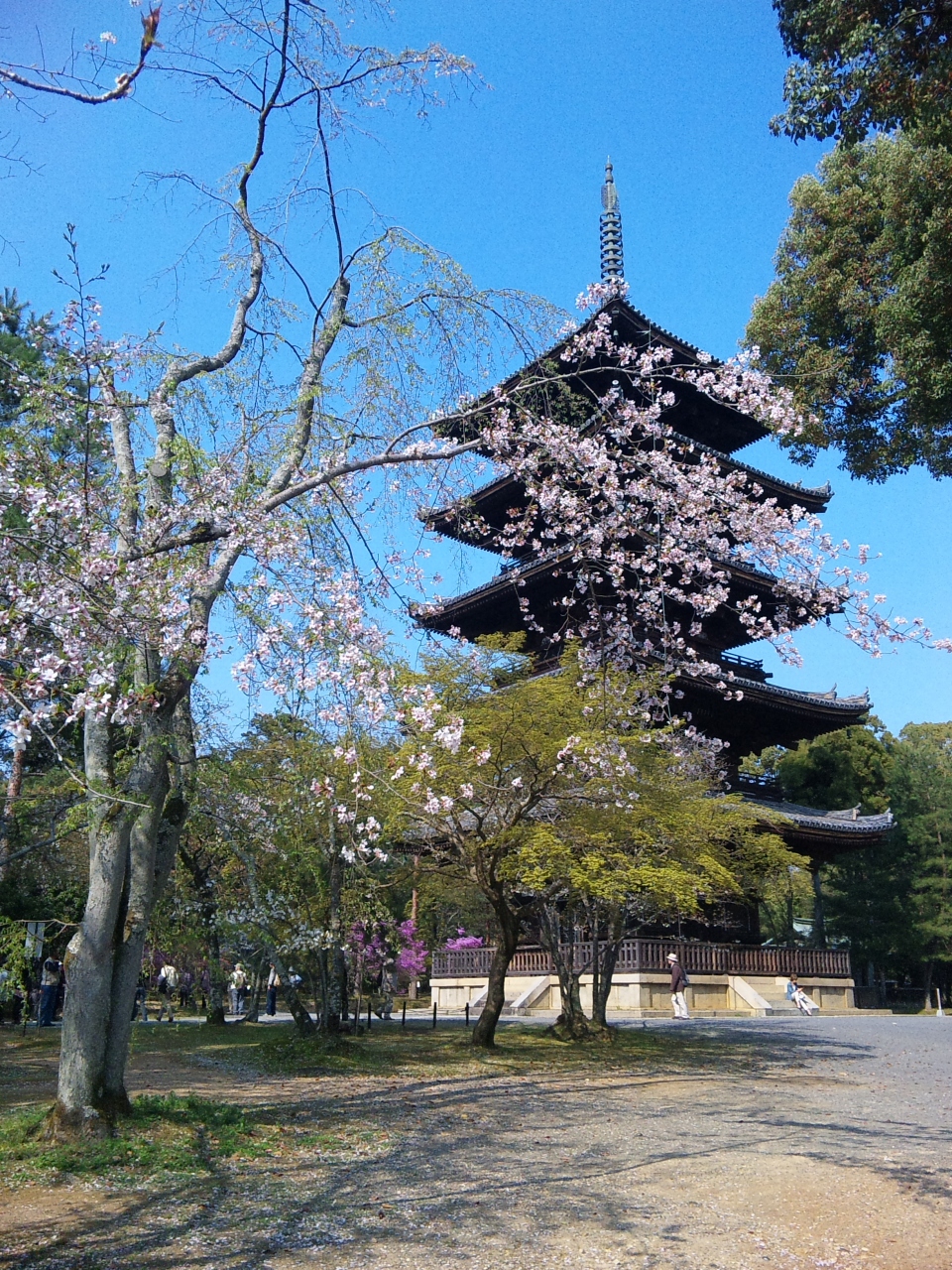 仁和寺で有名なのが御室桜。機会があればこの時期に行くことをお勧めします。普通の桜より背丈が低く、かわいらしい桜です。当たり前ですが満開の時に見たのでとても好印象です。桜の時期はこの周辺の道路は特に混みあいますので、時間には余裕を持つことをお勧めします。