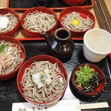地元の人がたくさん来ていて、にぎわっていました。ソバはもっちり、しこしことしていて非常においしかったです。薬味は4段重ねになっていて、色々な薬味で味わうことが出来ます。そば屋の建物自体は普通でしたが、味はよく満足できるものでした。お勧めですよ。