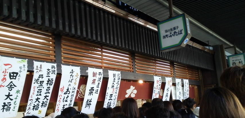 京都市内に観光で行った時に、以前から気になっていた出町ふたばさんへ立ち寄りました。お昼過ぎでしたが、行列がとぎれず、大変に賑わっていました。並んで購入した豆餅は餡は甘さ抑えめでとっても柔らかく大変に美味しかったです。また京都へ行った際には是非購入したいです。