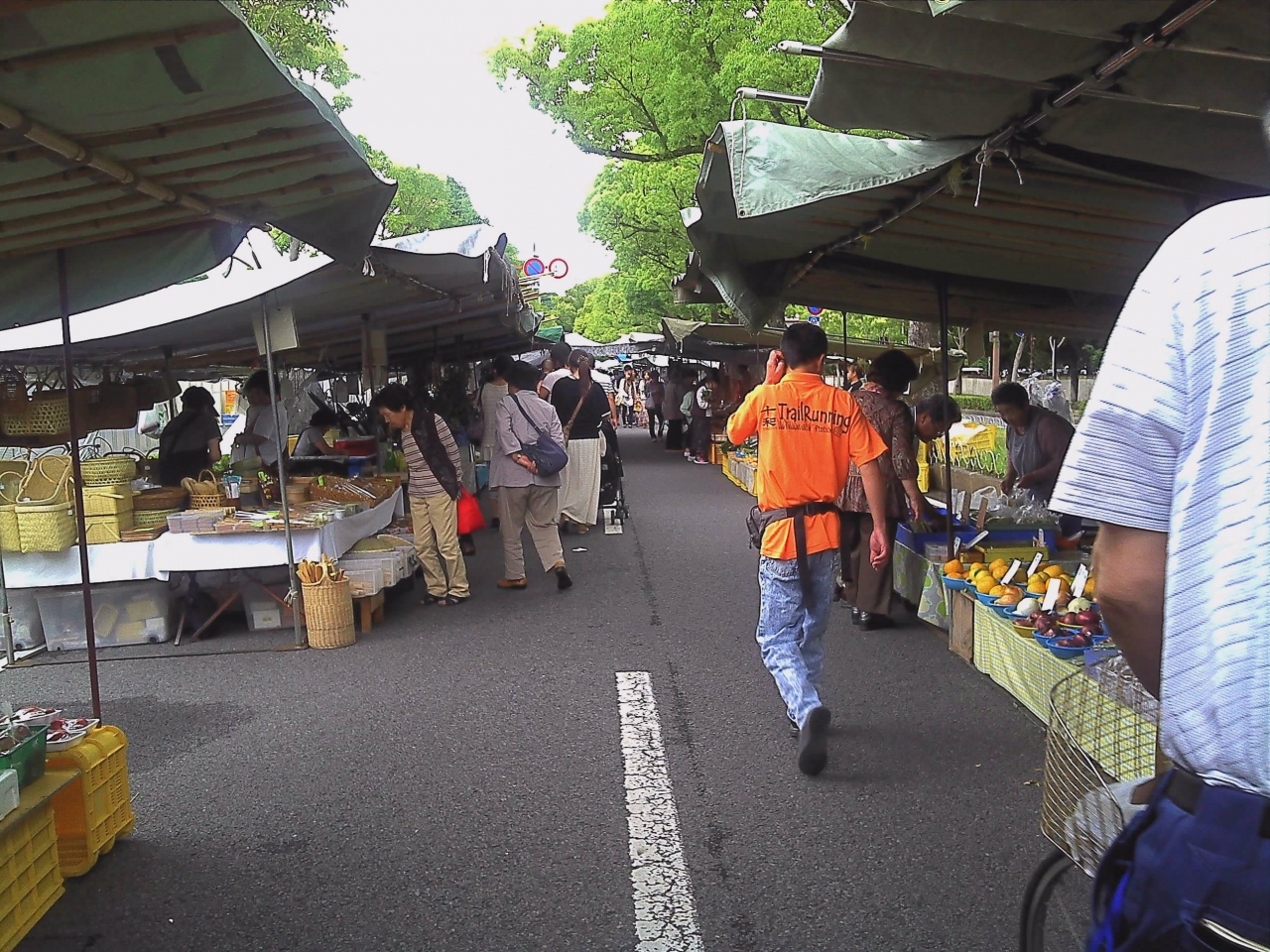 この日曜市は、高知城の近くの道路を一部片側を歩行者天国にして開かれています。朝市ではなく午後5時くらいまでやっていました。何でも打っているという感じで、地元で採れた食料品から骨董品まで売られていて大変面白かったです。