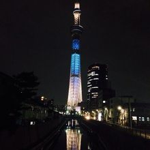 スカイツリーから少し離れた川の向かい側から見ました★川に反射して見えてとても幻想的な景色でした。曇っているとなかなか上手く見えませんが、晴れている時はとてもオススメです!スカイツリーの全体像もよく見えてキレイです。