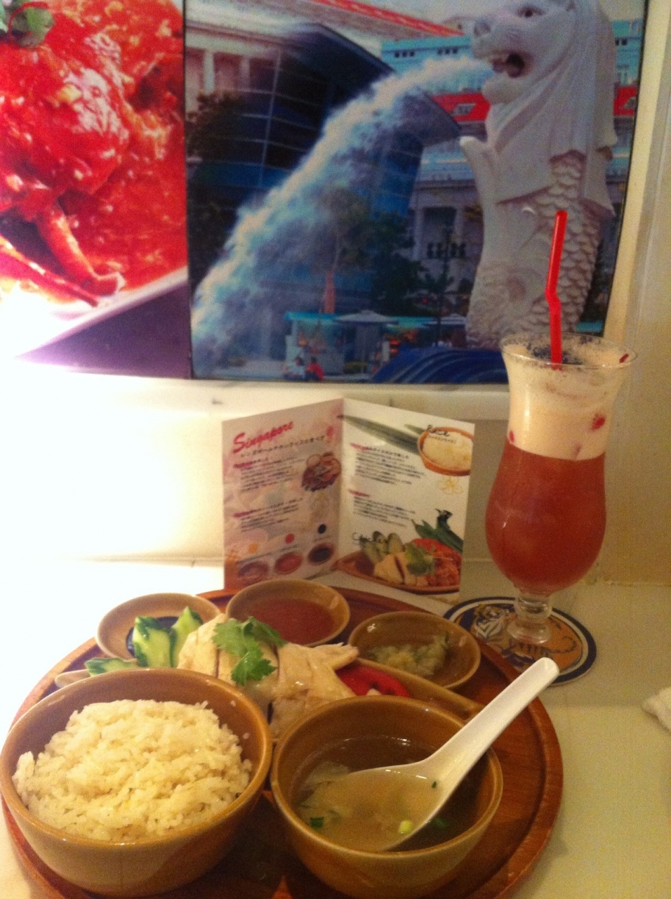 シンガポールスリングとチキンライスにしました。