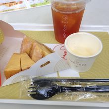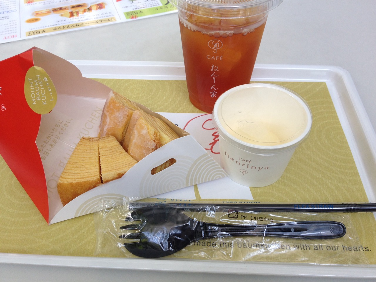 羽田空港第2ターミナル、搭乗口50番台付近にあるねんりん家。こちらの店舗ではカフェメニューがあり、定番のバームクーヘンがひと口サイズ&ホットになったものが販売されており、朝早いフライトの際には、朝食代わりによく食べています(搭乗口が近くないとむりですが)。ドリンクとセットで800円ほどと、安くはありませんが、ねんりん家が好きな方にはおすすめです。