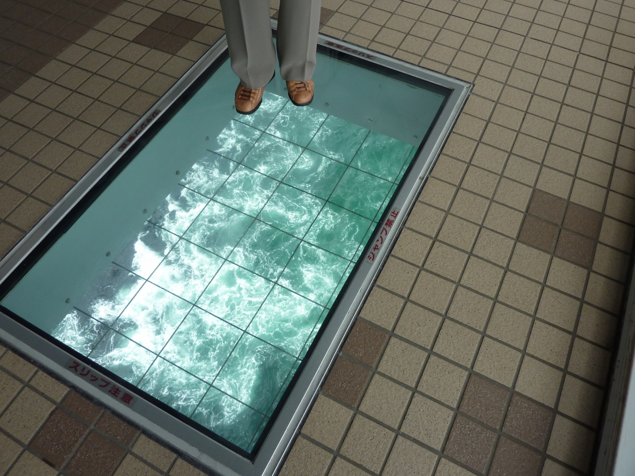 前回は渦が見られなかったが、今回は潮の状況が良くガラス床があるところまで行く途中から渦を巻いているのが見られた。小さい観光船が渦の上にいるのも上から見て大丈夫かと・・・、駐車場から距離があり途中に別の施設もあり標識を工夫した方が良いと感じた