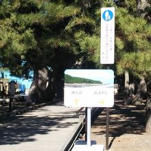 中央部分に木道があり、その木道沿いに松の木が並び、その両側に車道が位置するという構造となっていましたが、木道と松の木が織り成す光景に歩いていて風情を感じました。