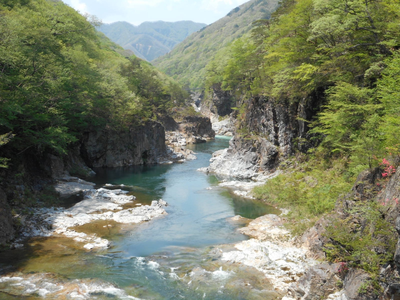 鬼怒川温泉から川治温泉に向かうと車で20分くらいで龍王峡の駐車場に着きます。