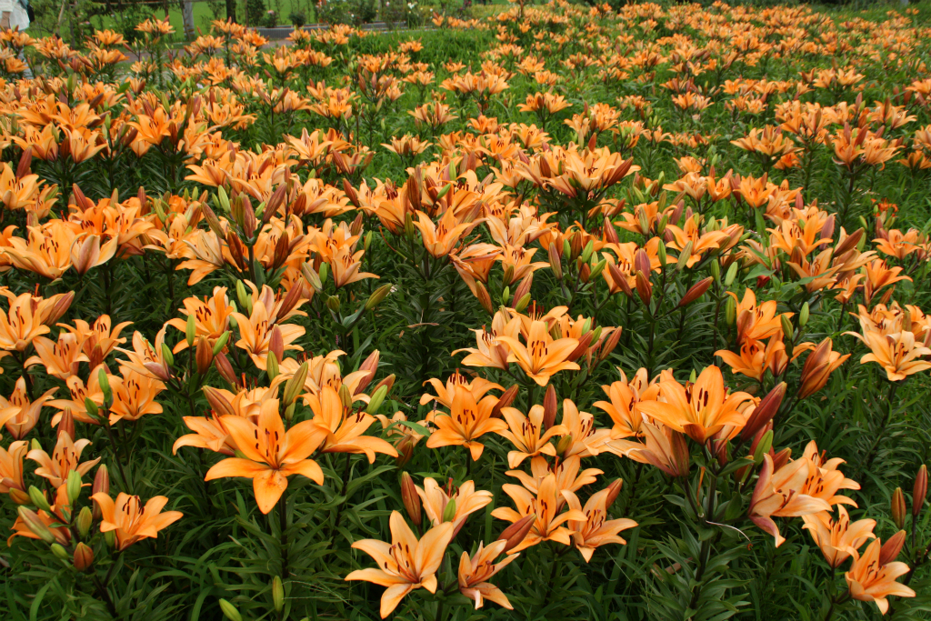 ゆりの里ユリーム春江の駐車場は無料です。かなりの台数が駐車できます。百合を見るための通路も広く段差がないので、老人ホームなど介護施設からだろうと思いますが、車いすの方も多く来られていました。百合は3万本あるということです。