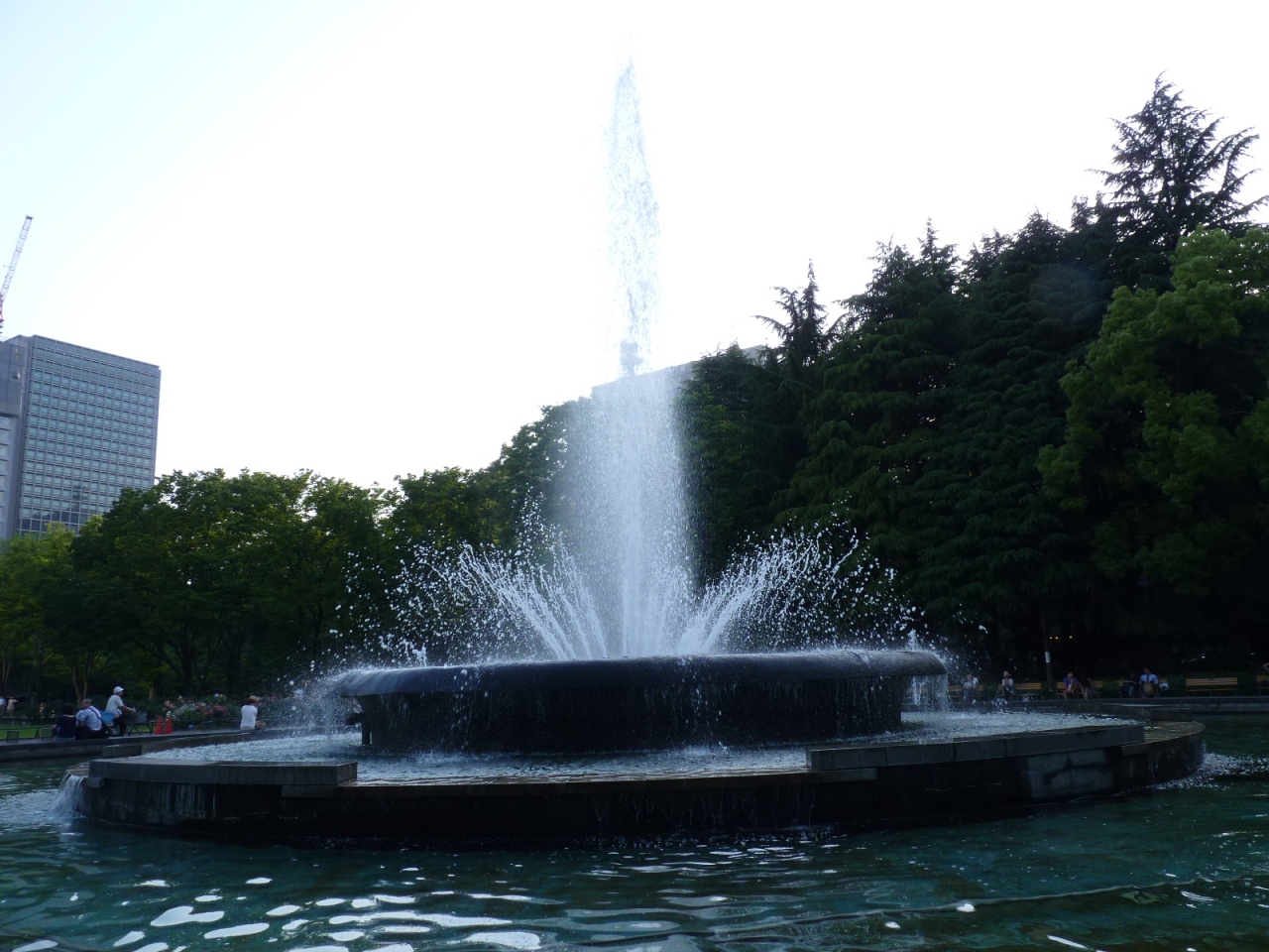 大きな噴水やイチョウの木、四季の花が咲く花壇などがありとてもくつろげる場所です。
