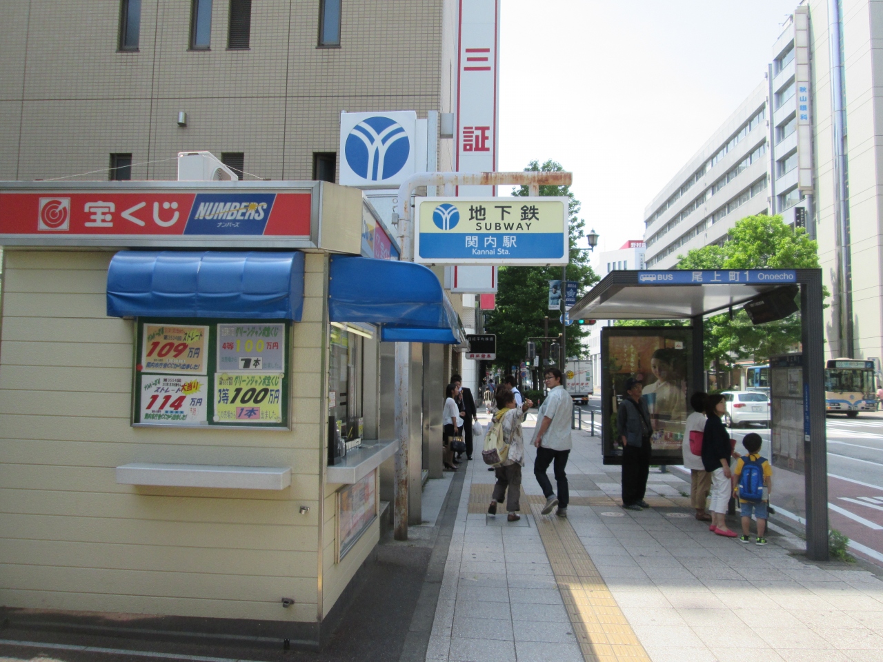 横浜市営地下鉄ブルーラインの駅で前後の駅は伊勢佐木長者町駅と桜木町駅です。JR関内駅の北口からは地下街でつながっています。横浜駅まで3駅で206円と時間がかかり、運賃が高いですが、JRが事故等で不通の場合は重宝します。