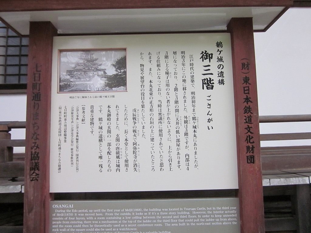 御三階は、七日町駅の目の前にある阿弥陀寺にあります。かつては鶴ヶ城内にあった建物を移築したのだそうです。中には入れませんでしたが、内部は4層になっているのだそうです。