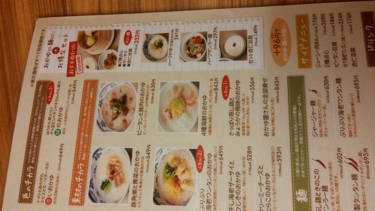 ほうれん草、そら豆、チンゲン菜、じゃこ、貝柱が入った緑のおかゆ700円を頼みました。