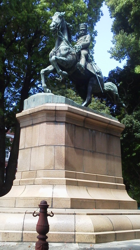 東京の中心あたりにある北の丸公園の”東京国立近代美術館工芸館”の入口の脇に君臨している銅像がこれ「北白川宮能久親王銅像」。なんでも、北白川宮能久親王は幕末から明治時代中期にかけて、現代の日本が変革した時代に活躍された皇族とのこと。明治時代には陸軍将校として軍務にご尽力・ご活躍されたという皇族とのこと。この銅像は既に明治時代に建立されたとのこと。この銅像は勇敢の姿をあらわしていますね。