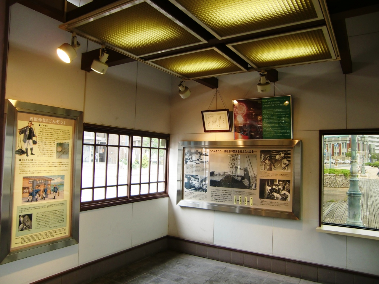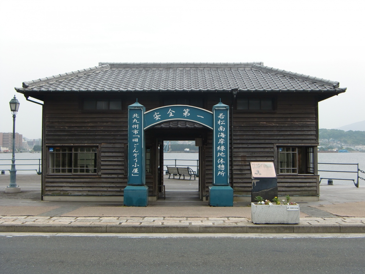 ごんぞう小屋は、当時の彼らの詰所や休憩所とされていて、若松南海岸通りに復元されてます。