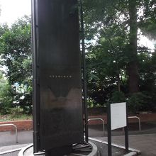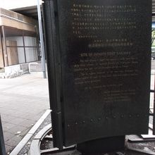 開業当時を偲ぶ、時刻表・運賃・心得・風景画(横浜駅)が鋼鉄のレールに刻まれた柱、SLの動輪風の台座に建っています。これそのもは鉄道ファンなら貴重でしょう(傍の解説版解読不明)。