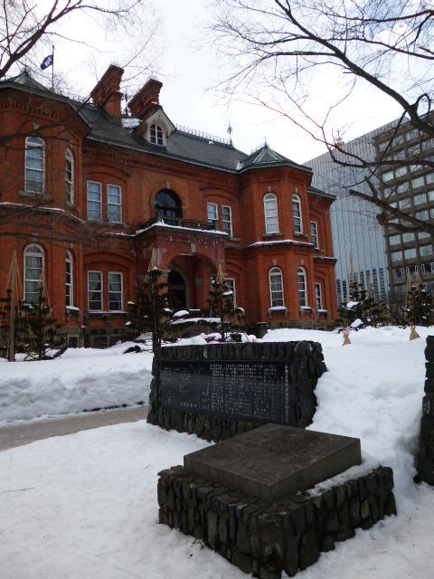 両側に高く積まれた雪の中を歩いて行くと、美しい建物が目に入ります。「赤れんが」の愛称で知られるの北海道庁旧本庁舎の建物です。1888年に北海道庁の本庁舎として建築された煉瓦造りの西洋館で国の重要文化財です。