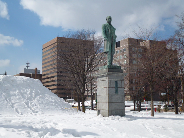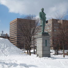 大通公園の中に、黒田清隆とともに銅像が建てられています。ホーレス・ケプロンは、開拓次官だった黒田清隆に開拓使の教師教頭兼顧問として招かれた人物です。北海道の地に酪農を持ち込み、発展させた貢献者だそうです。