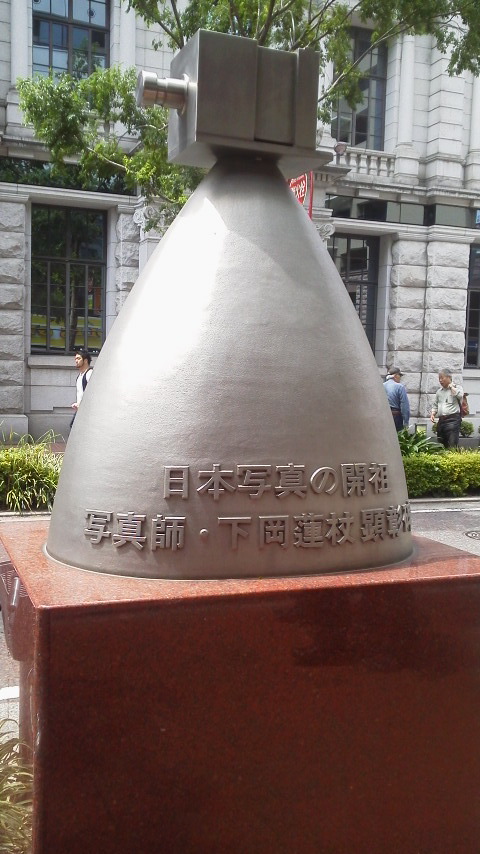 関内駅と馬車道駅の間には趣のある雰囲気の馬車道通りがありますが、この馬車道エリアには、いろんな記念するスポット、レトロな建築物など歴史を感じる空間が展開しています。その中にあるのがこの記念碑「写真の開祖 下岡蓮杖顕彰碑」。ここは、なんでも、近代の写真技術の先駆者として貢献した写真師を記念して建立されたものだそうです。